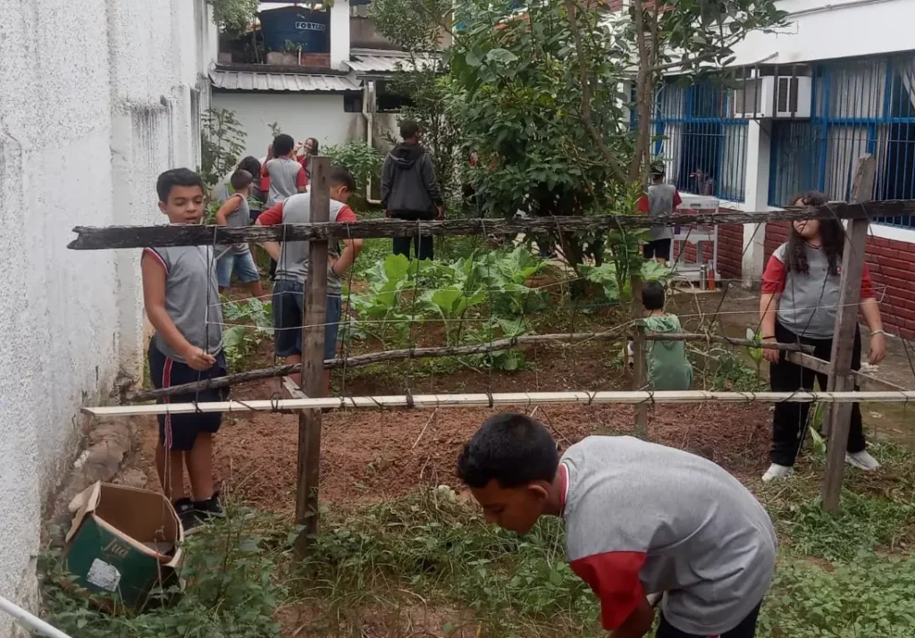 - Aulas práticas sobre cultivo, compostagem e consumo consciente.